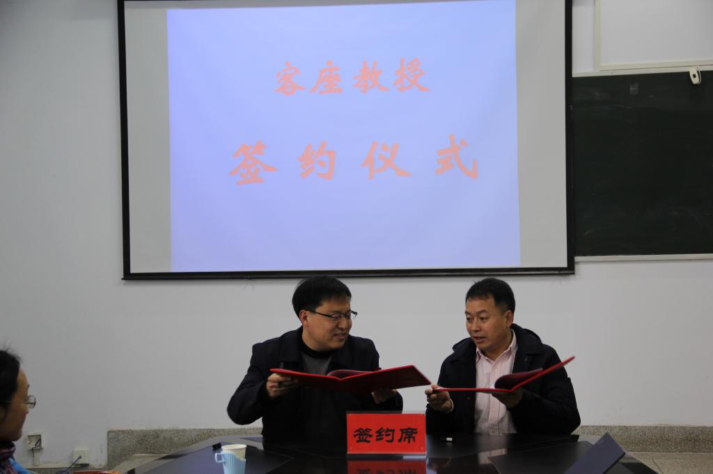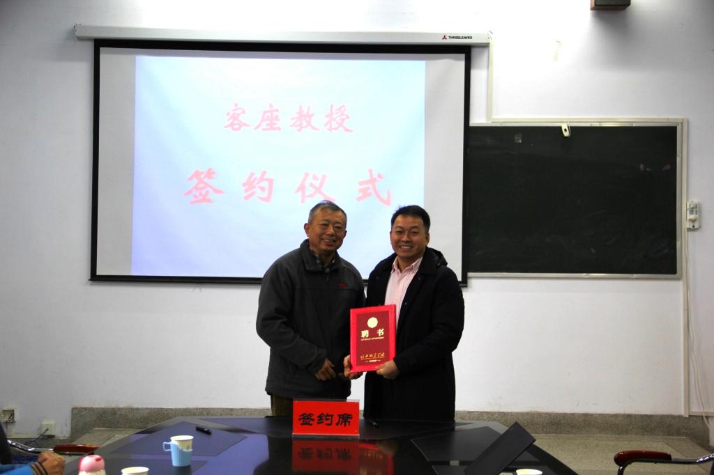 高成全介绍了朱庆教授的基本情况,高度评价其个人成就,对他接受聘请表示感谢。随后与朱庆教授签订聘任合同,由李生平颁发客座教授聘书。