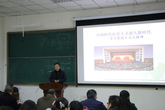 (通讯员 王梦琪)为深入贯彻落实党的十九大精神,积极推进党的创新理论成果的“三进”工作,按照校党委的部署,26日下午,在十号教学楼B105教室,计算机与数据科学学院、建筑与城市规划学院共同邀请校十九大宣讲团成员、校党委宣传部部长张建国以“中国特色社会主义进入新时代--学习党的十九大精神”为主题,为学院师生党员带来一场精彩的宣讲报告。