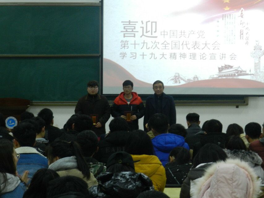 此次以演讲的方式进行党的十九大宣讲,活动形式新颖,通过一堂生动的党课教育,使广大青年学生在深刻领会党的十九大精神核心要义和思想精髓的同时,进一步坚定了为实现中华民族伟大复兴的中国梦不懈奋斗的理想信念。