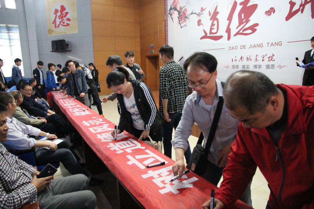 中华美德源远流长,道德的思想灿烂辉煌,道德是中华瑰宝、是文明之光。土木与交通工程学院党总支书记李青岭由浅入深,将本次讲堂主题所涵盖的何为“重莫如国,栋莫如德”更深一层次的意义娓娓道来,大家听后受益匪浅。活动最后,师生纷纷在条幅上签字,誓做道德榜样。
