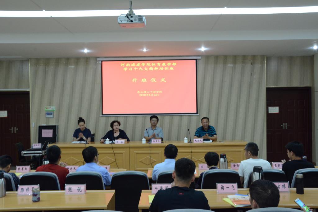 “河南城建学院体育教学部学习十九大精神培训班”开班仪式由主任常静主持,书记杨雷亭作了动员讲话。杨书记讲到我们党历来都十分重视“愚公移山”精神的弘扬和传承,今天我们学习“愚公移山”精神,要注意两个结合,一是要与学习十九大精神紧密结合,与“两学一做”学习教育紧密结合;二是要与当前工作紧密结合。希望大家珍惜这次难得的学习机会,牢固树立“四个意识”,坚定“四个自信”,做到“四个服从”,在政治、思想和行动上,同以习近平同志为核心的党中央保持高度一致。深刻领悟愚公移山精神的内涵和时代要义,不忘初心,砥砺前行,在各自的工作岗位上做出新的成绩。常主任要求大家在本次学习培训期间,认真听讲,做好笔记,联系岗位实际,勤于思考,通过学习培训,进一步提高自身素质和工作能力。