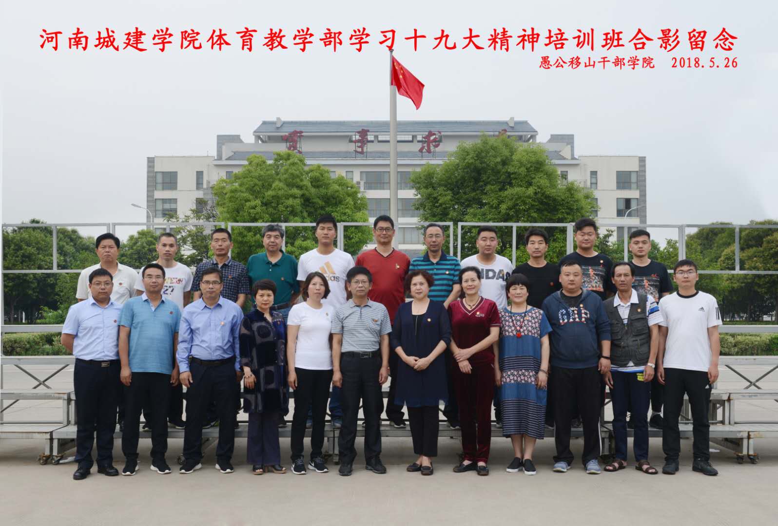 (通讯员 王智勇)为深入学习党的十九大精神,进一步增强教职工的党性修养和理想信念,根据学校安排,5月25日至27日,体育教学部全体教职工在领导班子的带领下,赴愚公移山干部学院参加了“学习十九大精神”主题教育培训。