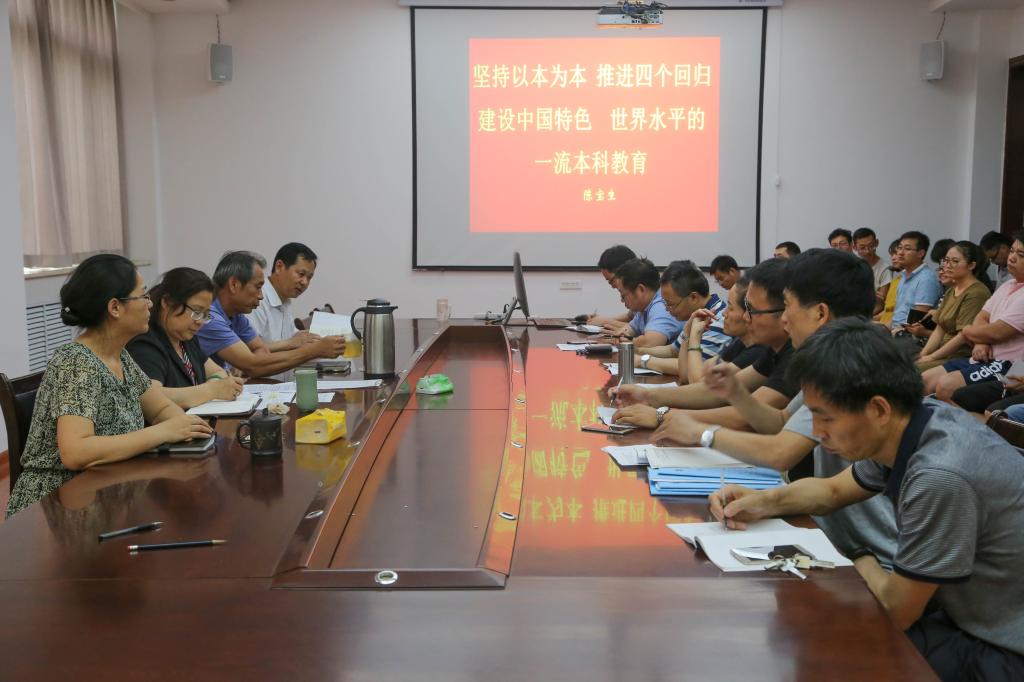 樊晓虹传达了陈宝生以《坚持以本为本推进四个回归 建设中国特色、世界水平的一流本科教育》为主题的讲话精神。讲话指出,要推动高等教育的发展就要深入学习贯彻习近平新时代中国特色社会主义思想和党的十九大精神,特别是全面贯彻落实习近平总书记5月2日在北京大学师生座谈会上重要讲话精神,落实“一个根本任务”、“两个重要标准”、“三项基础性工作”、“四有好老师准则”,并对青年学生提出了“四点希望”;要坚持“以本为本”,把本科教育放在人才培养的核心地位、教育教学的基础地位、新时代教育发展的前沿地位,推进高等教育要回归常识、回归本分、回归初心、回归梦想,把人才培养的质量和效果作为检验一切工作的根本标准,要写好“奋进之笔”,让本科教育内涵发展要更深一些、领跑发展要更快一些、公平发展要更实一些、变轨超车要更坚定一点、创新发展要更紧迫一些,建设高水平大学。