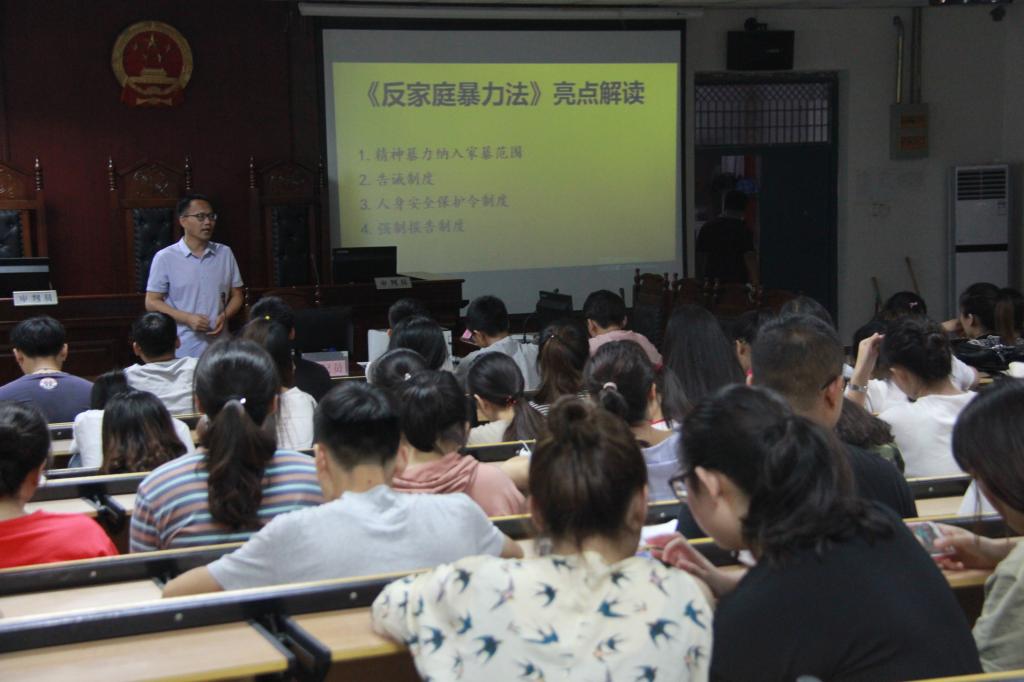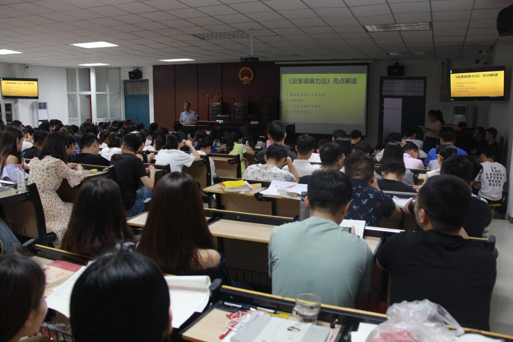 (通讯员 汤继华)为切实提高广大教职工对家庭暴力相关法律知识的认识,预防和制止家庭暴力的发生。6月25日下午,我校工会在法学院模拟法庭举办了一场以“反对家庭暴力,构建和谐校园”为主题的专题讲座,我校有200余名教职工生参加了本次讲座。
