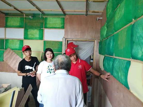 志愿者服务队一行人于7月14日上午来到位于平顶山市新华区井青社区的老兵周正家,老人的愿望是装修一间自己的隔音室。周正老兵说:“我每天抽出来几个小时忙,由于一个人不方便,每天的工作进度很慢,本来预计明年暑假也不一定完成。这下好了,有了你们志愿者的帮助,速度加快了很多,很开心你们的到来。”接下来老兵与志愿者服务队投入到漫长的工作中,测量模板,裁剪材料,调整线路等。下午同样进行着繁琐的工作,但每位志愿者脸上都洋溢着笑容,如同在实现自己的愿望。一天接近尾声,老兵表示这一天等于他一人奋斗好几天,送志愿者离开时一直表达自己的感谢。