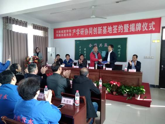 (通讯员 崔弼峰)10月22日上午,河南城建学院与河南本源水务公司在新乡县隆重举行了共建产学研协同创新基地签约暨揭牌仪式。出席本次仪式的有市政与环境工程学院院长郭一飞、副院长田长勋等河南城建学院相关教师。新乡县主管副县长王建新、城建局局长岳国有,广东本源集团总经理卢泉水、河南本源水务公司总经理王学河及全体员工参加揭牌仪式。