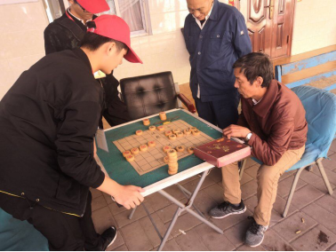 志愿者在陪老人下棋
