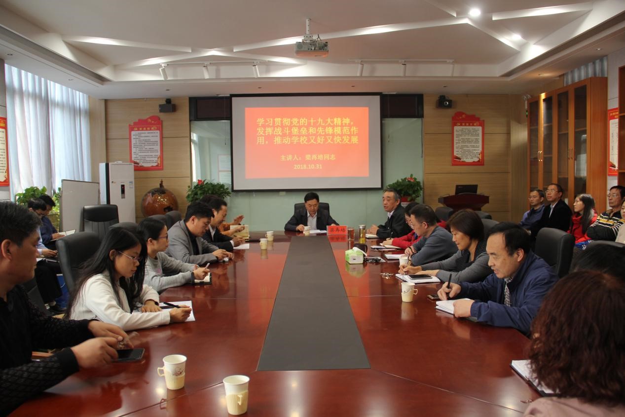 (通讯员 周鹏超)10月31日下午,测绘与城市空间信息学院在5#209会议室开展全体党员教师“学习十九大精神”专题党课,副校长梁再培作了题为“学习贯彻党的十九大精神,发挥战斗堡垒和先锋模范作用,推动学校又好又快发展”专题报告。测绘与城市空间信息学院和外国语学院全体教职工党员参加。