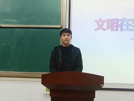 (通讯员 贺亚伟 孙鹏举)为了使同学们养成良好的文明礼仪习惯,提高学生的道德水平,创建文明校园,11月30日,数理学院在七号楼317教室举行了“文明在我身边”为主题的演讲比赛。数理学院全体大一学生参加了本次比赛。