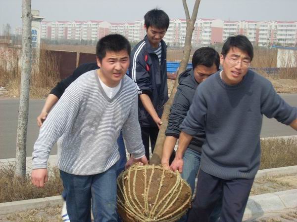 同学们把树抬到树坑