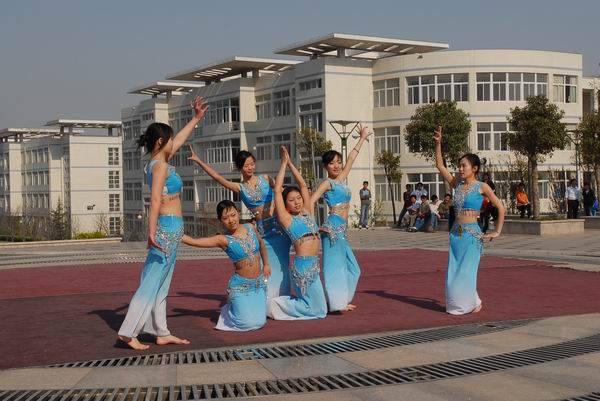 外语系学生在表演舞蹈《美丽的金孔雀》