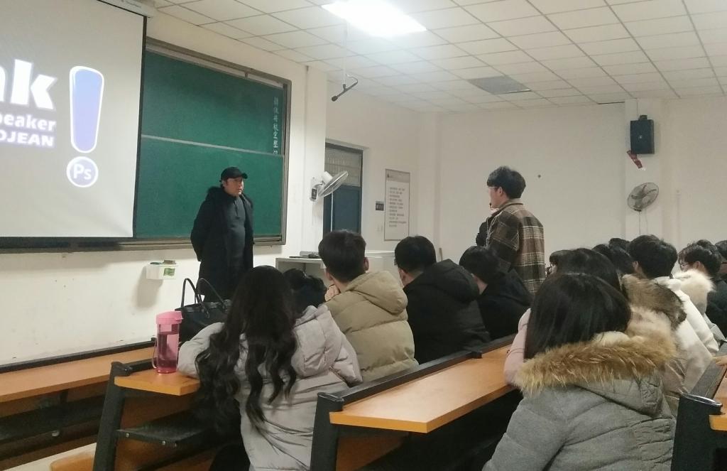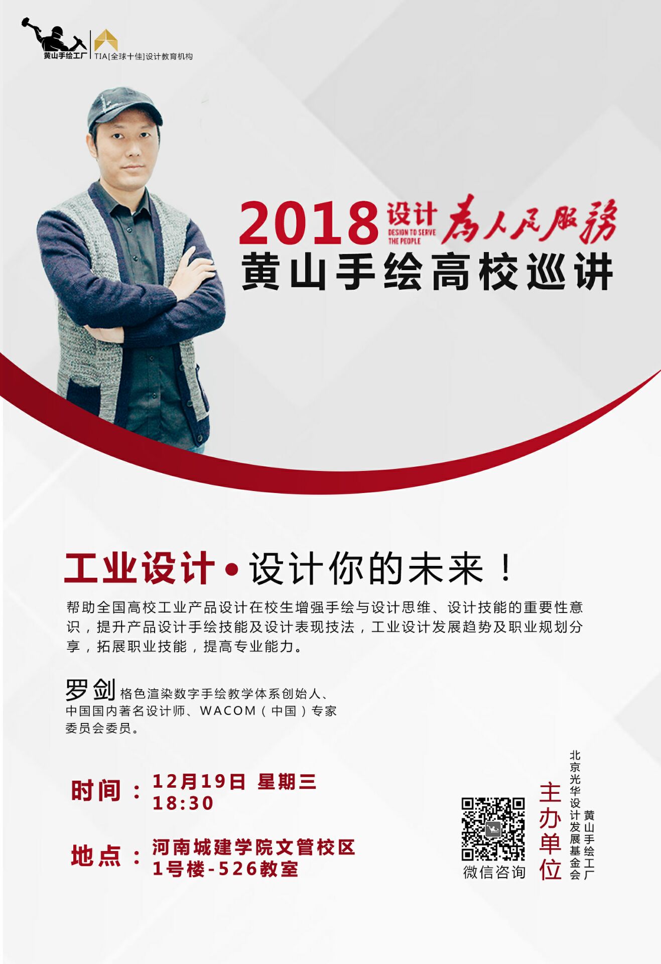 (通讯员 郭永欣)12月19日晚,格色渲染数字手绘教学体系创始人、中国国内著名设计师、上海同济大学外聘讲师、上海工艺美院客座讲师,日本WACOM(中国)专家委员会委员罗剑老师在艺术设计学院526教室举行了“设计为人民服务,黄山手绘高校巡讲”的公益讲座。副院长汤喜辉致辞,艺术设计学院杨东旭副教授、郭永欣老师、孙振利老师等110余名师生参加了此次专业讲座。