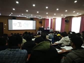王宜超博士首先在5号教学楼C-214教室作了题目为“二维插层化合物及其在光电,生物及催化方面的应用”的学术报告,化工教研室、高分子教研室、材料化学教研室的相关教师及化学工程与工艺专业学生百余人参加了报告会。报告中,王博士对澳大利亚迪肯大学作了简单介绍,并重点对靶向药物载体、二维材料及纳米材料在光催化等多方面应用的研究内容作了详细介绍。整个报告,思路清晰,思维严谨,师生均反映收获很大,受益匪浅。
