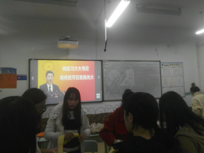 为响应习近平总书记的号召,将传统节日发扬光大,坚定传统文化自信,给广大青年学子打上传统文化的烙印,外国语学院翻译班全体同学在学院领导和老师的关怀下,于12月22日下午在文管校区319教室举行“迎冬至 包饺子 党在我心中”活动。大一大二和大三的部分学生以及学生会全体成员参与本次活动。