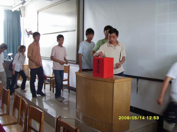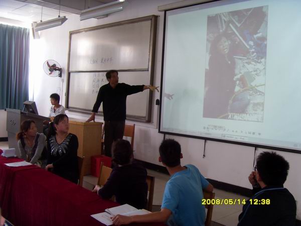活动于5月14日中午,在三号教学楼417教室举行。首先,系党总支书记赵静生用大量翔实的图片资料介绍了这次地震灾害的有关情况,接着传达了上级机关的有关文件精神,并向全系学生党员发出号召,发扬爱国主义精神,发挥先锋模范作用,用爱心为灾区重建贡献力量。
