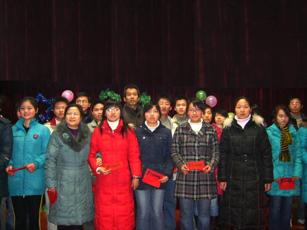 6:30晚会在吴林建同学《等一分钟》的美妙歌声中开幕,演员们用动听的歌声、笛声,优美的舞姿,幽默的相声,搞笑的小品,风趣的三句半,贴近大学生活的话剧等为在场的观众奉献了一个个精彩的节目。外语系的女生们也登台献艺。晚会进行到中途,该系领导对黄遂,范曾同学分别在“职业生涯规划大赛”和“省数学建模大赛”中获省二、三等奖给予表彰。随后,对获国家奖学金2位同学及获国家励志奖学金的27位同学举行了颁奖仪式。 表彰仪式把全场的气氛推到了高潮,接下来李凯等同学为大家奉献歌曲《回头太难》,晚会最终在大合唱《we are friends》中结束。