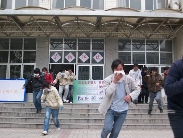 随着哨声口号的发出,疏散教师迅速组织疏散系馆楼的学生,同学们都用湿毛巾捂住鼻子和嘴巴,安全、快速、有序地撤离现场。整个演练过程组织有序、指挥得力、人人认真对待,没有出现拥堵现象。大家以最短的时间撤离到了安全地带,整个撤离、疏散过程用时不到1分钟。