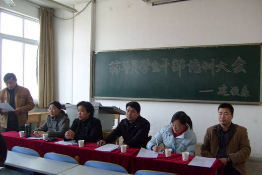 会议由建设系薛老师主持,会议上,团总支书记刘海燕对如何做好一名优秀的学生干部作了报告,马步伟副书记就如何做好辅导员工作作了重要讲话,最后,建设系宋书记对本次会议作了全面总结,并对新学期的工作提出了几点要求:1.干部要深入学生宿舍,关心受灾学生,并做好及时有效的信息反馈。2.学生干部要切实履行自己的职责,摆正自己的位置,真正发挥好老师与学生之间的桥梁与纽带作用。3.新学期要以新的面貌迎接新的挑战,使建设系的各项工作再上新台阶。