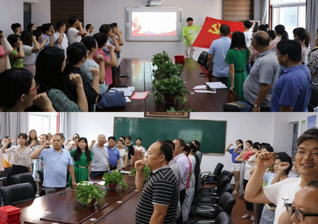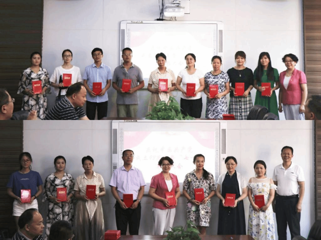 会上,张换成宣读了《中共河南城建学院外国语学院总支委员会关于表彰2018—2019学年优秀党员、优秀党务工作者和先进基层党组织的决定》,秦小锋宣读了《中共河南城建学院外国语学院总支委员会关于表彰“学习强国”学习平台学习标兵的决定》,党总支组织委员许红彬带领全体党员举行了新党员入党宣誓暨老党员重温入党誓词活动。
