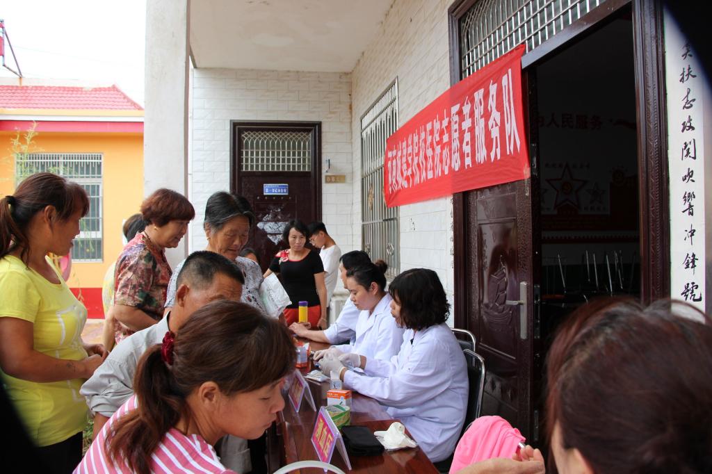 为打好扶贫攻坚战,完成“送健康知识,送义诊服务”的任务,7月4日上午,校医院一行十余人在副院长景勤的带领下到我校定点帮扶村鲁山县搬山岭村开展义诊扶贫活动。活动中,医务人员热情为来诊的群众义诊,还耐心为他们指导常见病、多发病的预防等,同时为群众送来了常备的药物和健康的知识。