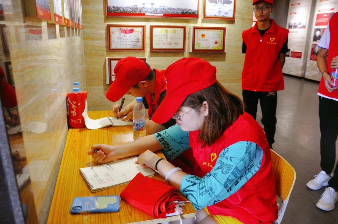 走进段庄革命老区纪念馆,首先映入眼帘的是“红色段庄,革命堡垒”八个大字,大型浮雕展现了段庄党员干部和广大人民群众辉煌的革命事业。段庄老区革命纪念馆分5个展区,每个展区生动展示了这一党支部的成长历程,展现出他们为革命事业抛头颅洒热血的革命精神。在参观的过程中,志愿者们聆听了讲解员的讲解,也和同来参观纪念馆的游客们及工作人员进行交流,了解他们对红色文化助力脱贫影响的看法和感受。通过短暂的交谈,志愿者们了解到建立该纪念馆的初衷以及当地人民对于新青年的希冀。
