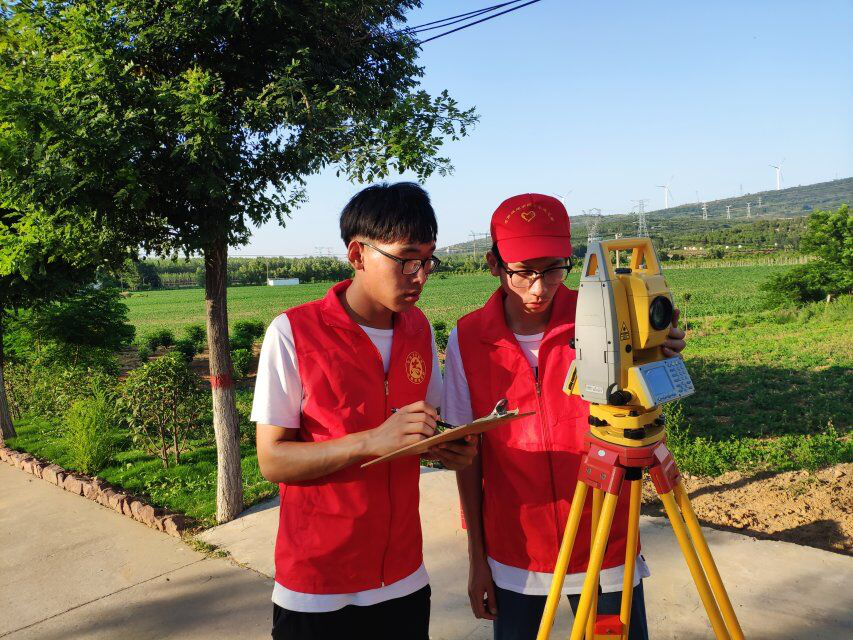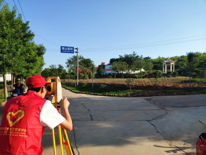 测绘学院服务队到达郏山阳村后,大家集思广益,热烈讨论,根据郏山阳村的实际地形制定了最优测量路线,大家携带测量仪器兵分两路,分两个方向对村庄道路、房屋和地物进行测量。为了加快工作进度,测量队员不畏酷暑,在烈日下也毫不退缩,专心致志、精益求精,丝毫不因条件的艰苦而有任何马虎。经过历时两天的奋斗,终于圆满完成了测量工作,将测量成果与整治情况进行对比,结果与预期基本一致。