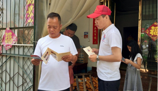 (图为服务队成员发放推普宣传手册)