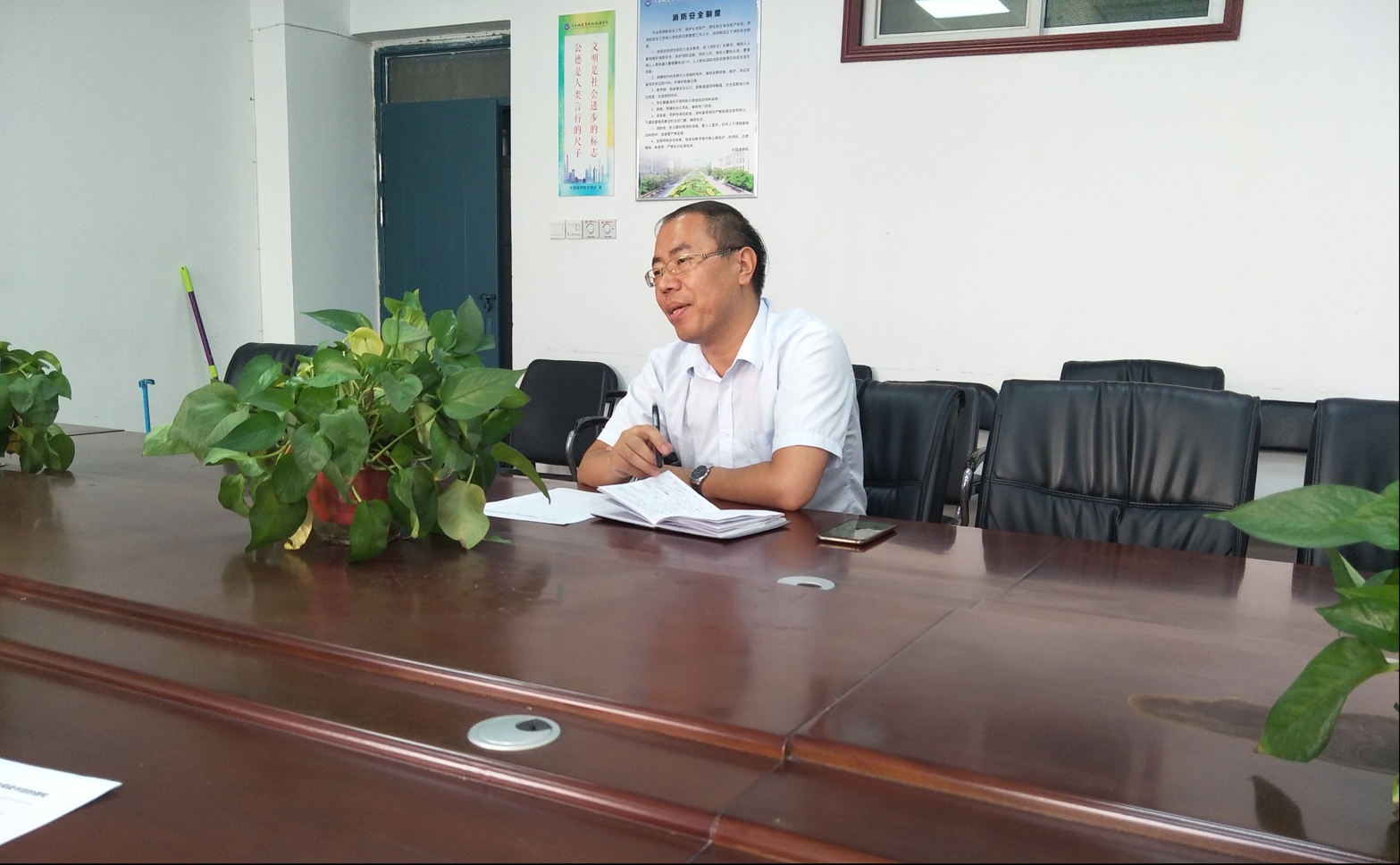(辅导员认真记笔记)