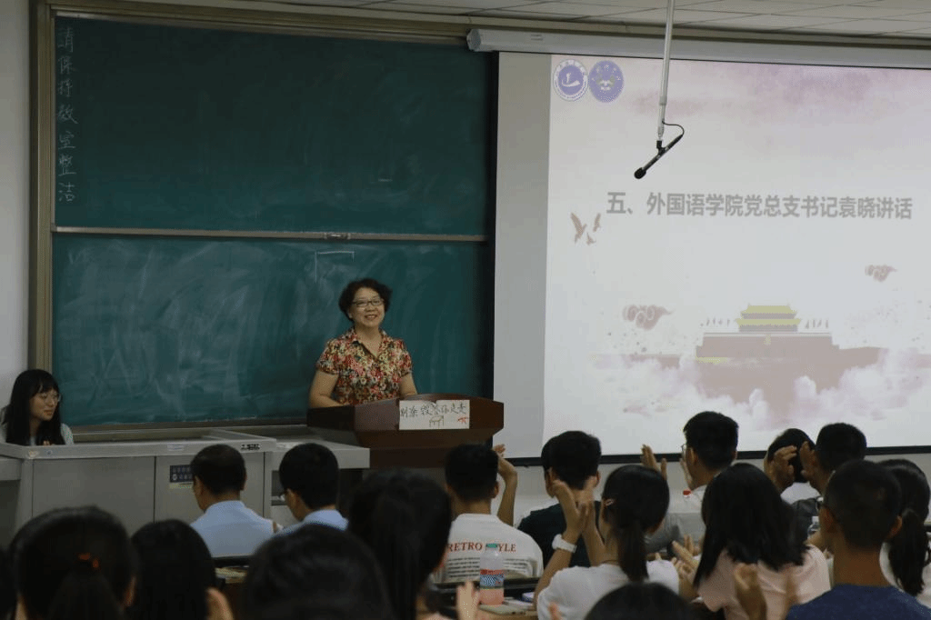 袁晓以“坚守初心、牢记使命”为题做总结发言,她讲到:“每一名大一新生都怀着最初的梦想,每一个学生都肩负着时代和家庭的使命,希望同学们的初心在外语坚守,使命在外语实现”,她从四个方面告诫大一新生如何做到学有所成,不负韶华:理想信念、修身直立、知行合一、心智健康。最后她谆谆教导大一新生:只有学业扎实,才能在百舸争流中脱颖而出;只有培育和践行社会主义核心价值观,才能更好地把握人生的方向盘;个人的涓涓细流只有汇入祖国时代的江海,才能充沛丰盈。为大一新生上了思政第一课。