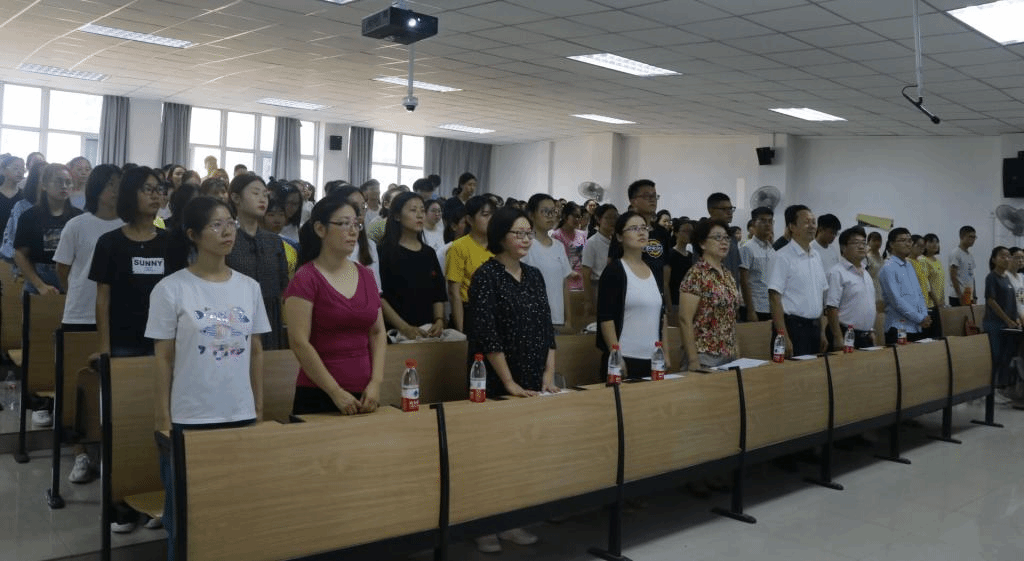 (通讯员 赵星辰)时至中秋,硕果累累,桂花飘香!9月9日上午,外国语学院在一号教学楼328教室举行2019级新生入学典礼。院党总支书记袁晓、院长秦平新、副书记张换成、副院长秦小锋、学工办主任兼团总支书记田果果、教研室主任张鲁艳和全体辅导员老师出席典礼,大一全体新生参加。副书记张换成负责主持。