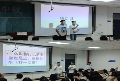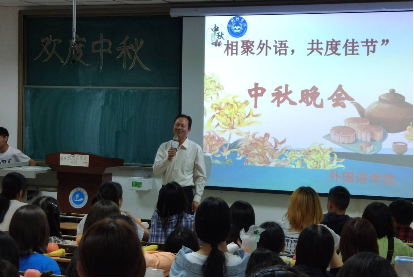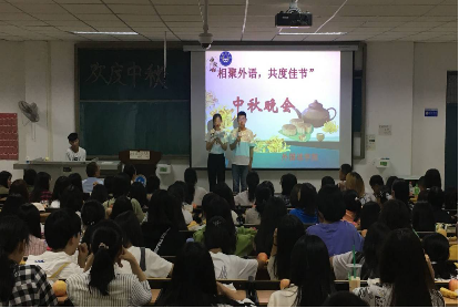 (通讯员 赵星辰 宋琰)银辉满月情相浓,欢度佳节喜相逢,2019级新生迎来了在大学时期度过的第一个中秋节。为帮助2019级新生适应大学生活,拉近同学们彼此的距离,9月13日晚上外国语学院师生在一号教学楼328教室举办中秋晚会。院长秦平新、党总支副书记张换成、学工办主任兼团总支书记田果果、教务办主任张湘雨、辅导员靳真真及全体大一新生参加活动。