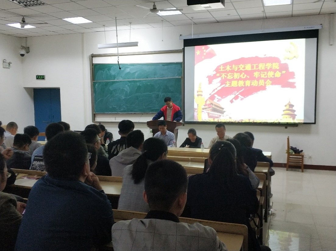 (通讯员 范哲哲) 为了贯彻落实好中央、省委和校党委关于“不忘初心、牢记使命”主题教育工作部署安排,9月17日下午,土木与交通工程学院在10#B105教室召开“不忘初心、牢记使命”主题教育动员会。校“不忘初心、牢记使命”主题教育第一巡回指导组组长马明江、指导组成员李阳、周勃出席会议,土木与交通工程学院领导班子和全体师生党员参加会议。会议由我院党总支副书记宋帅奇主持。