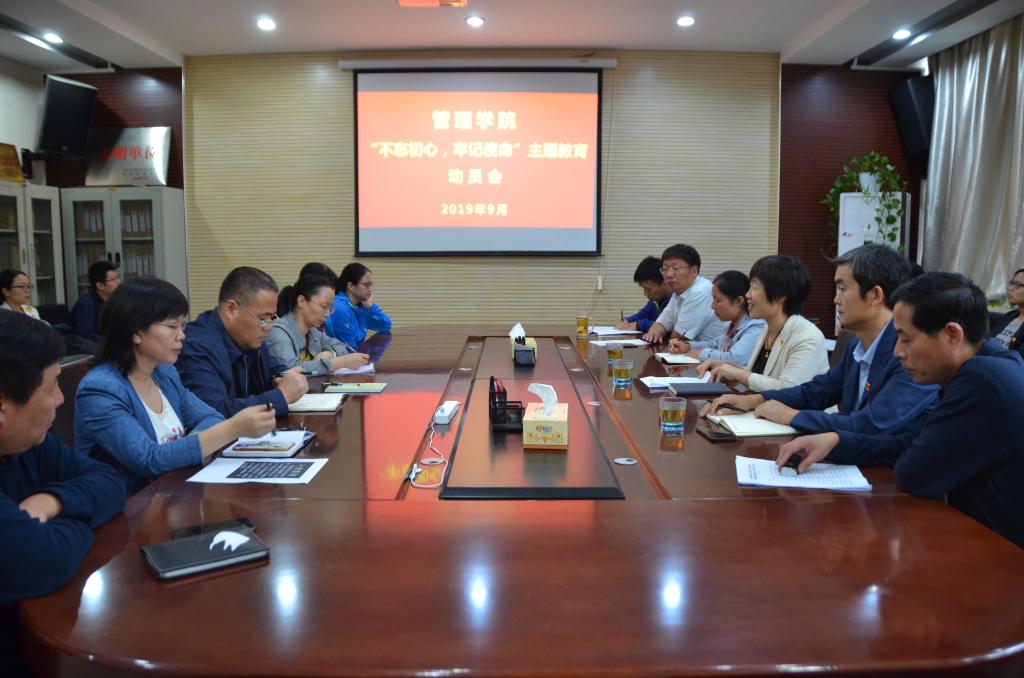 (通讯员 常小高) 9月17日上午,管理学院在学院三楼会议室召开“不忘初心、牢记使命”主题教育动员会。学校“不忘初心、牢记使命”主题教育第四巡回指导组组长刘雅妹、指导组成员胡建业、张金俊和学院领导班子成员、全体师生党员参加了动员会。