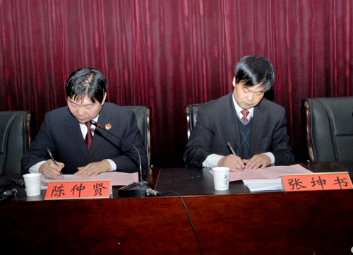 张坤书、陈仲贤代表双方单位签署了共建“阳光法制基地”协议书。根据协议,在共建活动中,新华区检察院将邀请我院法律系的优秀学生担任社区矫正志愿者,在该院少年案件公诉局干警指导下参与未成年人犯罪的案前预防、案中引导和案后矫正;新华区检察院将与我院进行学术交流,使检察干警接受前沿法学理论和实务动态的培训,培养学者型检察官,全面提高干警的整体素质和能力;检察院将选派具有丰富经验的资深检察官与学院师生进行案例探讨,开展实例讲学。