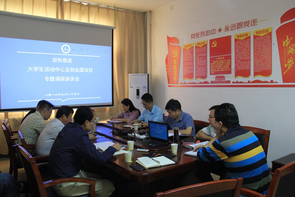 (通讯员 董明明)9月25日,根据学校“不忘初心、牢记使命”主题教育活动安排,副校长周新峰就“如何加快推进大学生活动中心与创业园项目”进行专题调研,基建处、财务处、招标办、设计院、审计处、信息化办、施工单位、监理单位等参加,基建处牵头组织。