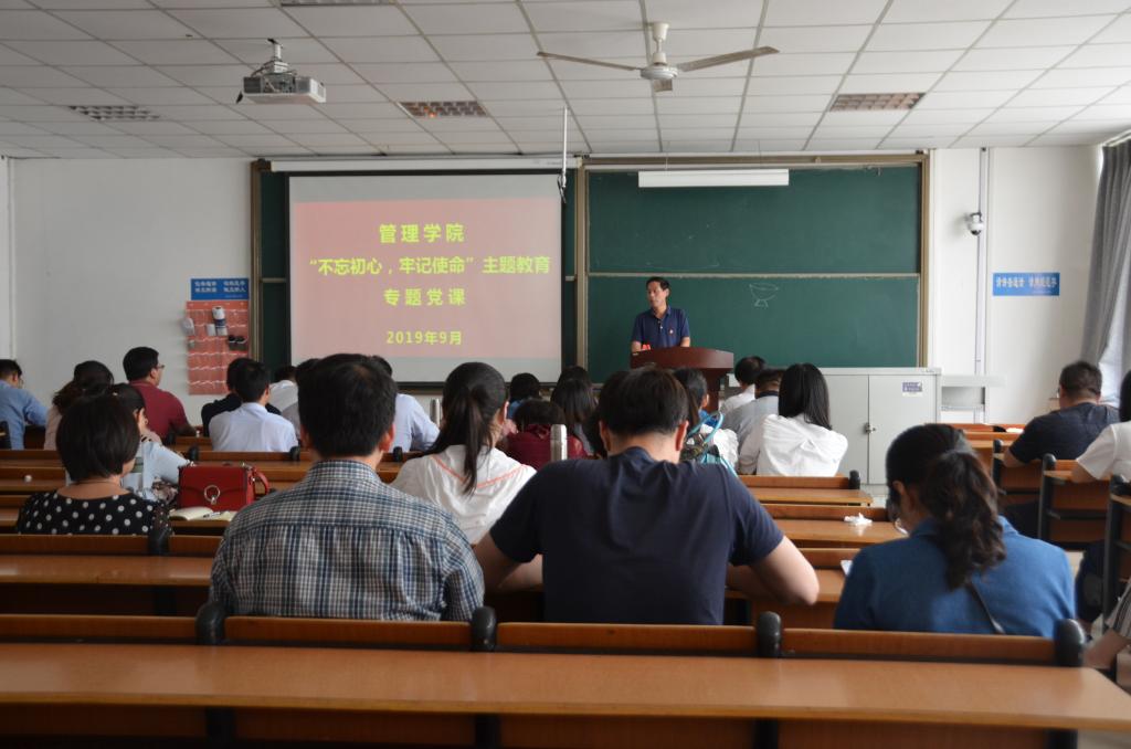 (通讯员 裴帆)根据“不忘初心、牢记使命”主题教育有关工作安排,9月25日下午,管理学院党总支书记谢学明在8#B208给全体党员讲授“不忘初心、牢记使命”主题教育专题党课。