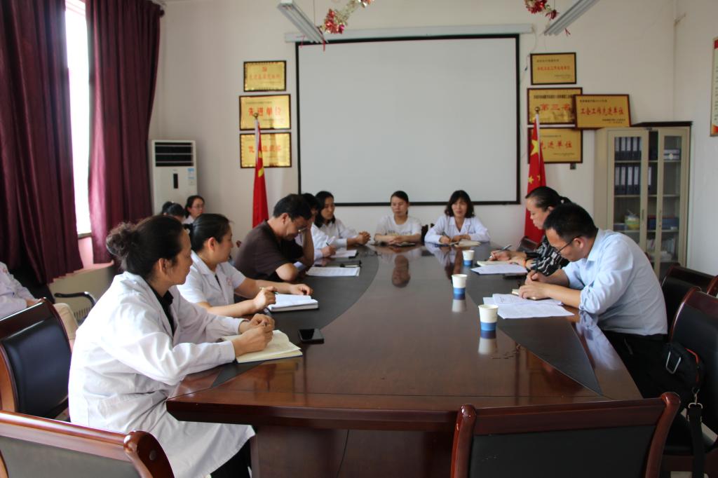 9月26日下午,医院党支部召开“不忘初心、牢记使命”主题教育活动。学校“不忘初心、牢记使命”主题教育第六巡回指导组成员张星、张强对医院“不忘初心、牢记使命”主题教育工作进行督导检查。会议由赵宝山书记主持,医院全体职工参加。