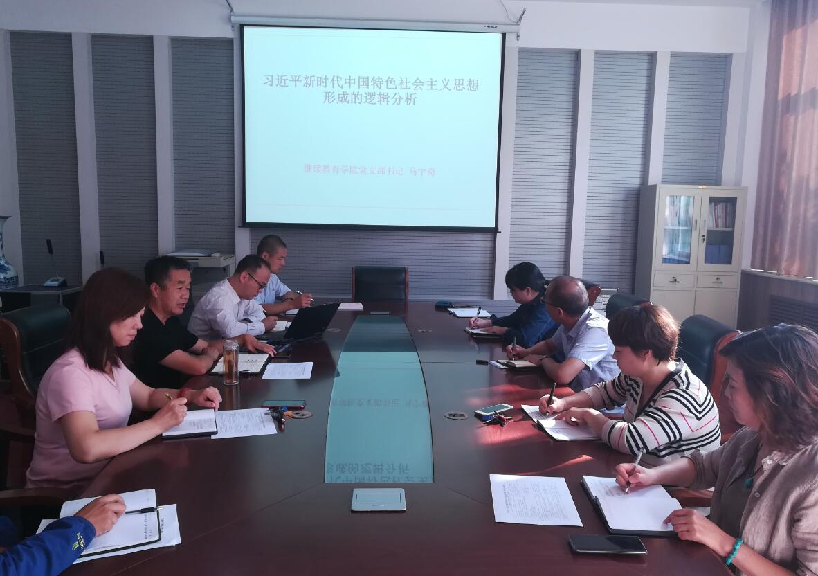 9月26日,继续教育学院党支部在党员活动室举办“不忘初心、牢记使命”专题党课活动,支部全体成员参加。继续教育学院党支部书记、院长马宁奇作了题为《习近平新时代中国特色社会主义思想形成发展逻辑分析》的报告。
