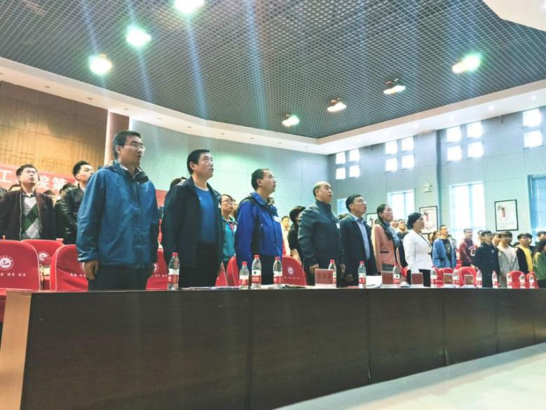 全体师生起立,奏唱国歌