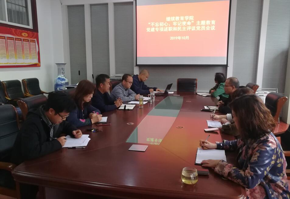 按照“不忘初心、牢记使命”主题教育工作要求,继续教育学院党支部于10月15日,在2号教学楼A座310党员活动室,召开党建专项述职会议并开展民主评议党员活动,继续教育学院全体党员参加会议。会议由党支部书记、院长马宁奇主持。