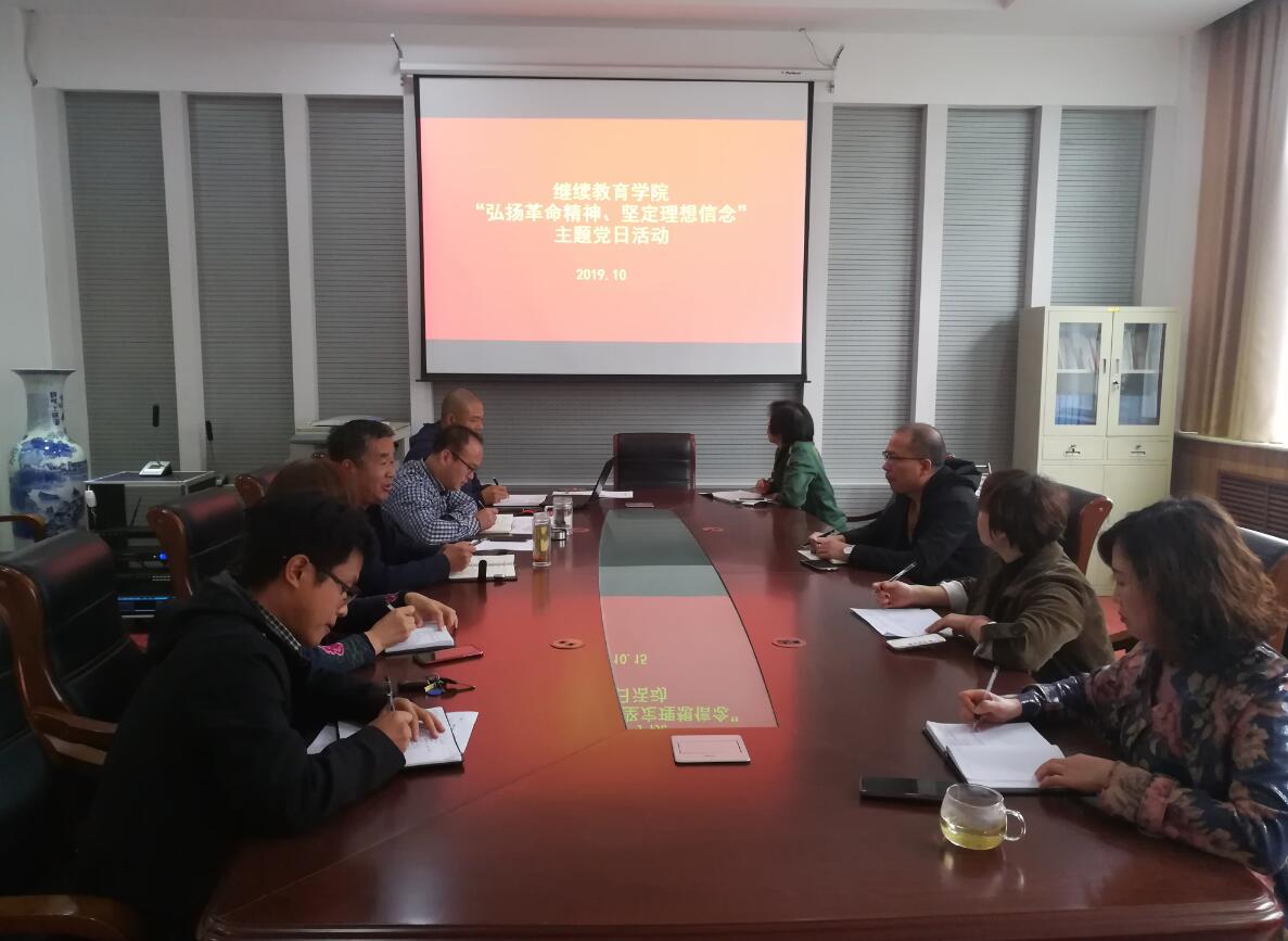 10月17日下午,继续教育学院党支部以“弘扬革命精神、坚定理想信念”为主题开展党日活动,全体职工参加活动。活动由党支部书记、院长马宁奇主持。