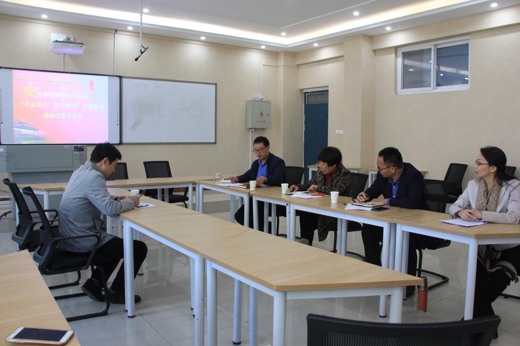 (通讯员 汤继华)10月18日上午,法学院在1#422会议室召开“不忘初心、牢记使命” 主题教育调研成果交流会。校第八巡回指导组成员弓亚超和法学院全体党政班子成员参加会议,会议由法学院党总支书记尹振羽主持。