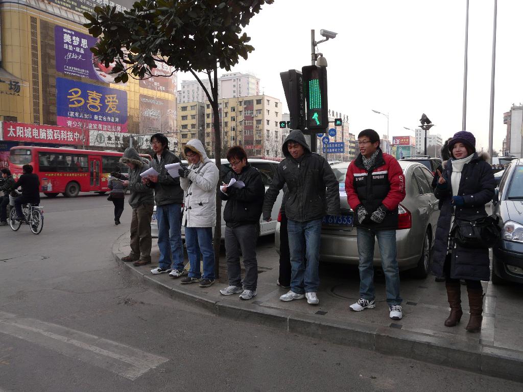 (通讯员 杨国洲) 2009年12月27日至2010年1月8日,交通工程系2007级交通工程专业本科生在专业教师带领下,冒着冬日的严寒,在平顶山市主城区主要交叉路口进行交通流量调查,为相关部门制订平顶山市主城区主要交叉口交通拥堵改善方案提供第一手数据。