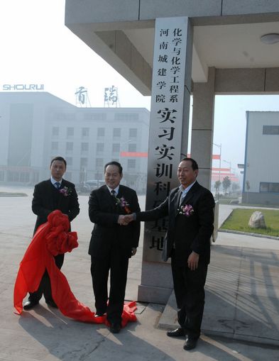 仪式上,李德平书记与苏建涛书记共同为“河南城建学院化学与化学工程系实习实训科研基地”揭牌。