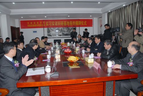仪式上,化学与化学工程系系主任赵海鹏代表我校与河南首瑞股份有限公司董事长程向阳共同签署了实习实训科研基地协议书。