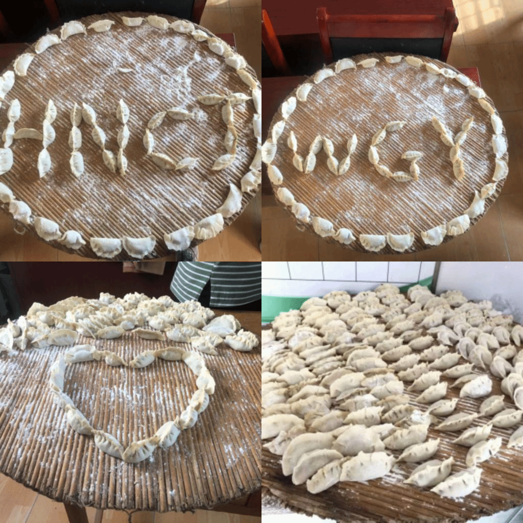 在包饺子之前,志愿者们首先对老人们进行了亲切的问候并帮忙打扫室内的卫生;准备好所需物品之后,志愿者们就开始着手包饺子。大家分工明确各尽其责,开始和面、擀皮、包饺子,不仅包出了各式各样的饺子,还摆出了各种各样的美丽的造型。包完饺子之后,志愿者们把煮好的饺子送给每一位老人,并帮忙清洗卫生,整个过程中充满了温暖和欢声笑语,使节日气氛更加浓厚。