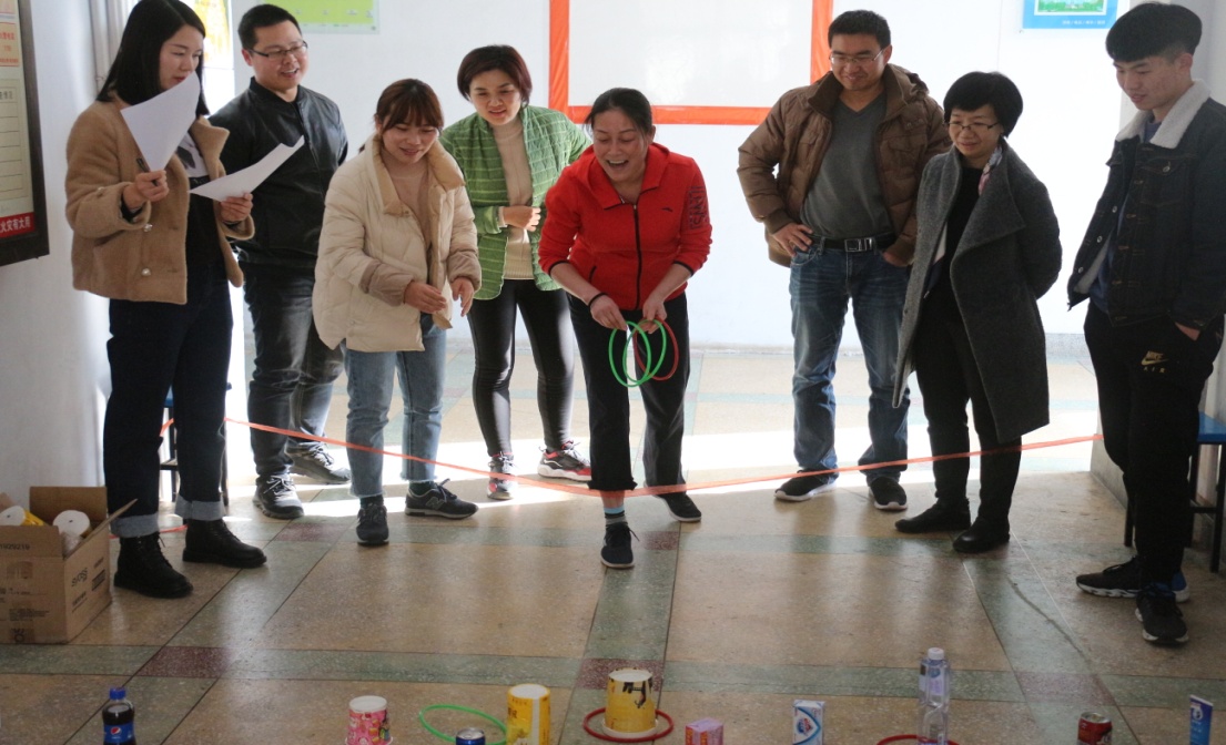 本次趣味运动会共设个人项目踢毽子、投飞镖、对墙打乒乓球、套圈比赛,团队比赛项目有集体跳绳、抛绣球、齐心协力背夹球。本着“安全与友谊第一,比赛与名次第二”的良好比赛风格,教师们积极参与,奋勇争先。比赛现场异常火爆,精彩绝伦。大家脸上洋溢着开心和快乐,此次活动取得圆满成功,既丰富了老师们的业余生活,又达到了强身健体的目的。最重要的是增进了老师们间的感情,培养了大家们的团队合作精神,也营造了欢乐的节日氛围。