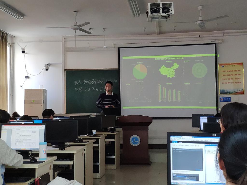 培训第二天,曙光瑞翼教育大数据工程师潘晓洋老师主讲了“kettle数据预处理实战”方面的内容。据潘老师介绍说,kettle作为目前十分常用的ETL工具,支持多种数据源与目的,针对越发复杂的ETL需求,选择kettl一个就够了,简单实用。接着,曙光瑞翼教育的大数据工程师张增光为老师们分享了pyecharts数据可视化与django框架搭建方面的内容。张老师通过较短的时间即为大家演示完成了基于pyecharts的一个可视化大屏展示,又通过半个小时的操作带着大家完成了一个web项目的搭建,并与pyecharts的可视化大屏进行了结合。在较短时间完成视觉冲击很强的视化与web项目搭建,引起了参训老师们的极大兴趣。