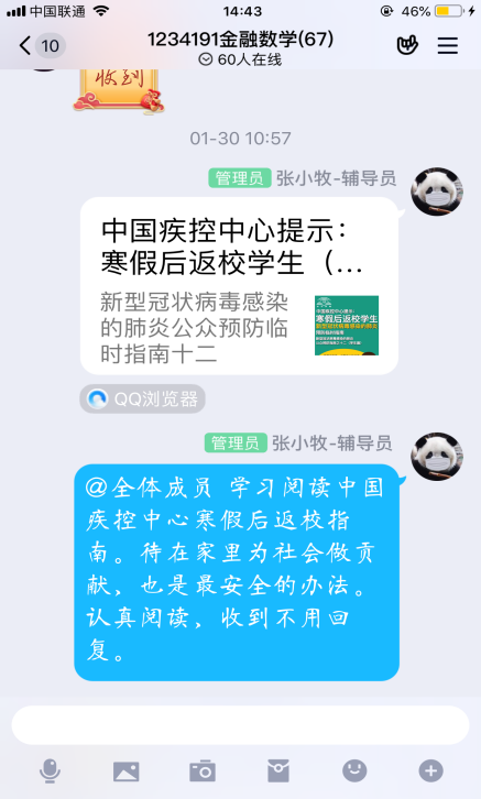 (辅导员通过线上宣传科学防疫知识)