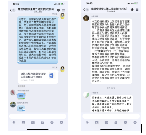 建筑与城市规划学院学生党支部开展此次主题党日活动通过线上集中学习《建筑与城市规划学院学生党员倡议书》,郑重承诺,“在抗击疫情的关键时刻,要坚守初心、勇担使命、不负重托、甘于奉献”。着重强调每位党员积极配合学院工作,做到绝不提前返校;密切关注各级政府及卫生防疫部门发布的权威疫情信息,不信谣、不传谣,树立必胜信心;及时掌握疫情防控及防疫知识,做好防护措施;减少不必要的外出,不到人群密集的场所活动;外出时佩戴口罩,到家后及时洗手,做好防疫消毒工作;在当前疫情防控的关键阶段,全体党员要当先锋、作表率,自觉做好疫情防控和志愿服务工作。